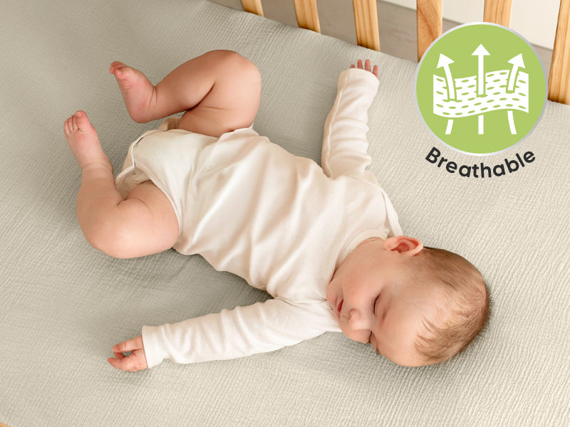 Let your baby rest in natural tranquility with the 52"x28" Lyra Muslin Crib Sheets. The breathable cotton muslin weave allows air to flow freely for all-season use. Keeping your little one cool in summer, cozy in winter, and always surrounded by soft, nurturing comfort throughout the night.