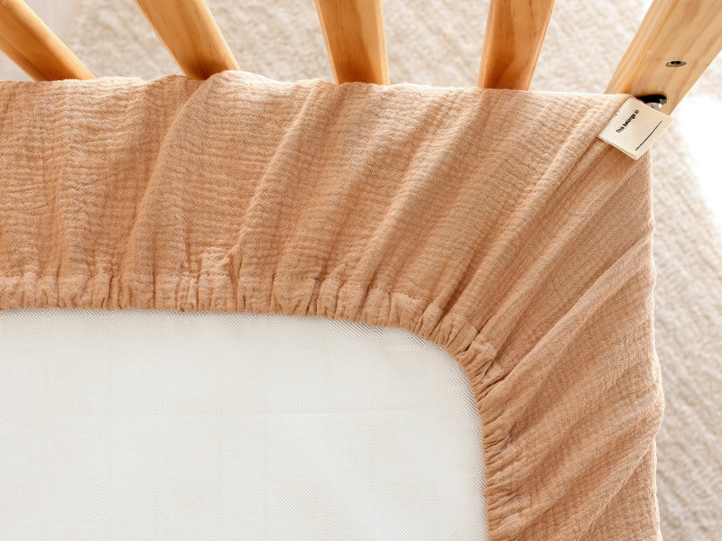 Wrap your little one in the tender comfort of Lyra Muslin Crib Sheet, crafted from 100% organic cotton muslin. Softly textured and smooth, it gently caresses delicate skin and grows even softer with every wash, ensuring peaceful sleep and sweet dreams, night after night.