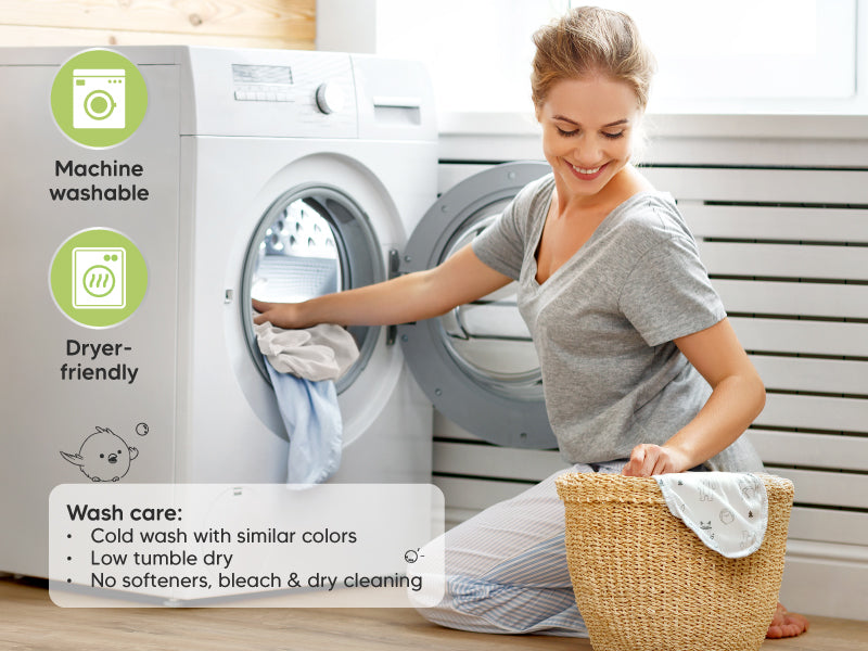 - Machine washable & dryer friendly, stays soft and waterproof after washes