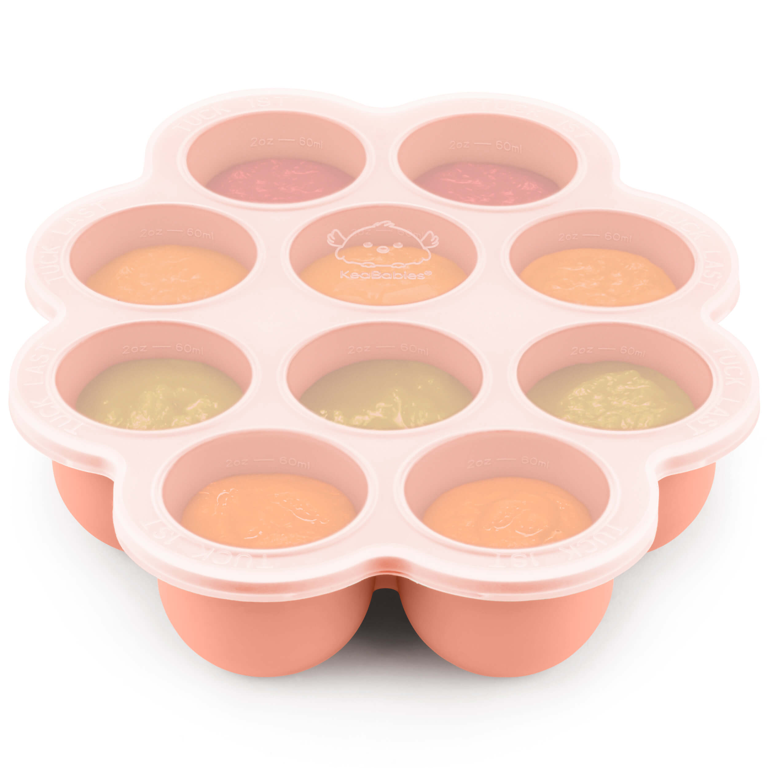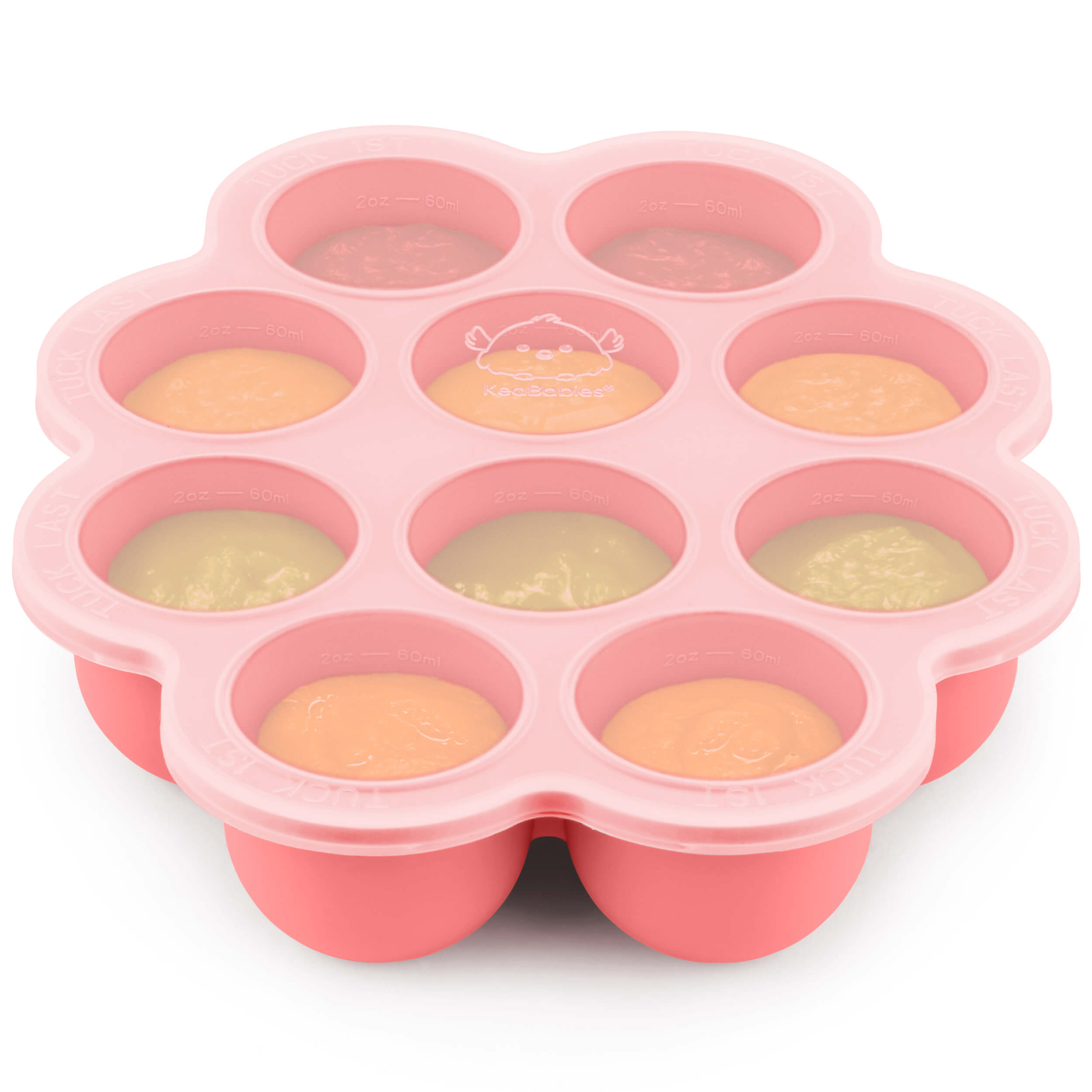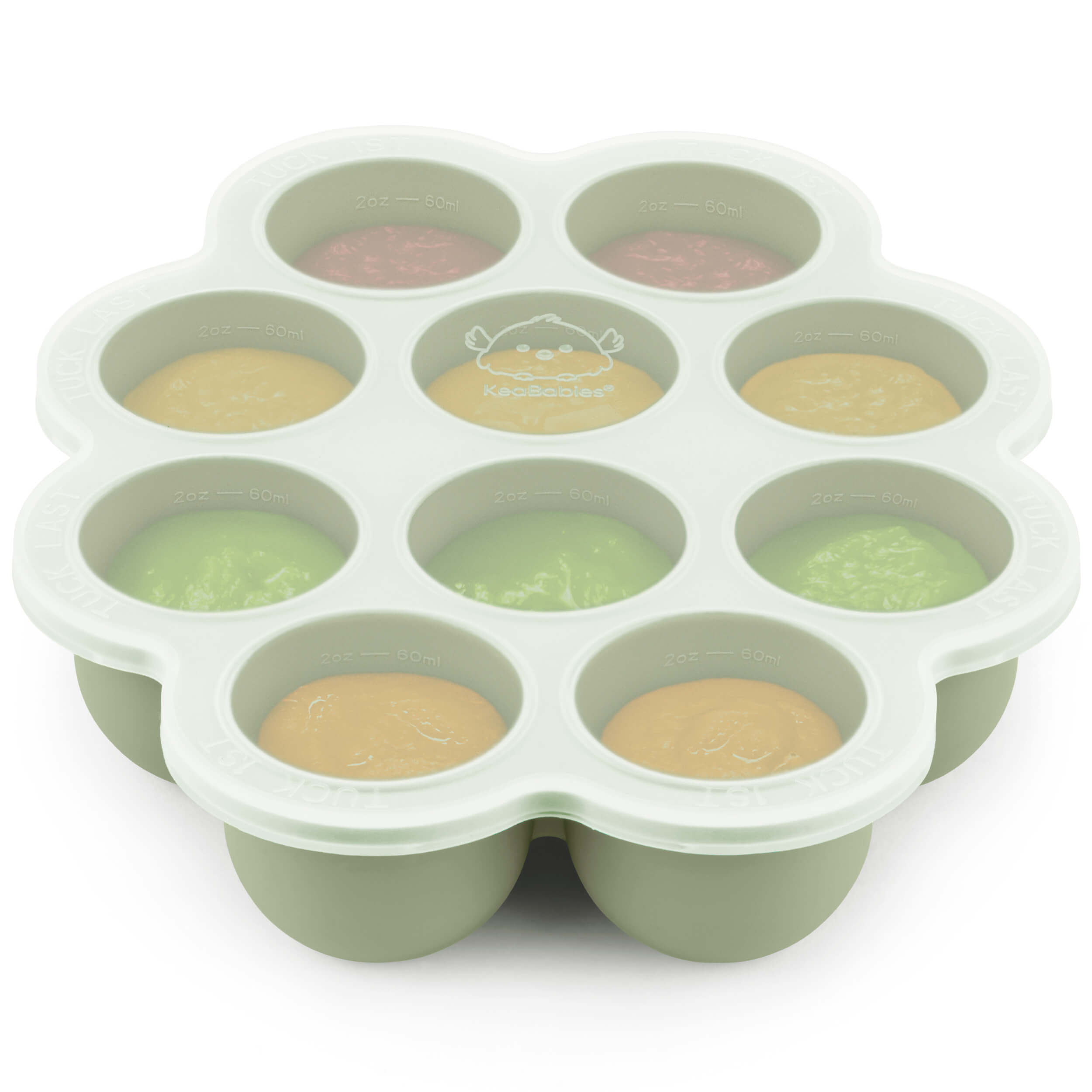 KeaBabies Prep Silicone Food Tray is easy to use and easy to clean. This product has 10 portions (1oz and 2oz marks in each pod) and made with 100% food grade silicone. The silicone is FDA & LFGB approved Food Grade Pure Silicone that is freezer, dishwasher, microwave, and oven safe. It also has a easy clip on clear silicone lid to keep food fresh.I highly recommend this product!