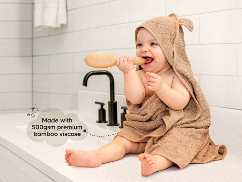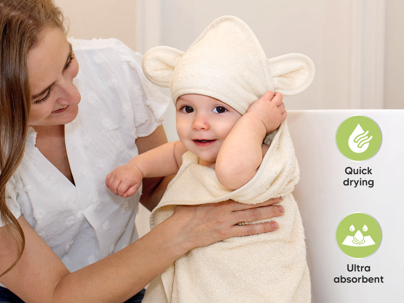 - Premium 500GSM baby bath towel, soft and gentle on baby's sensitive skin.