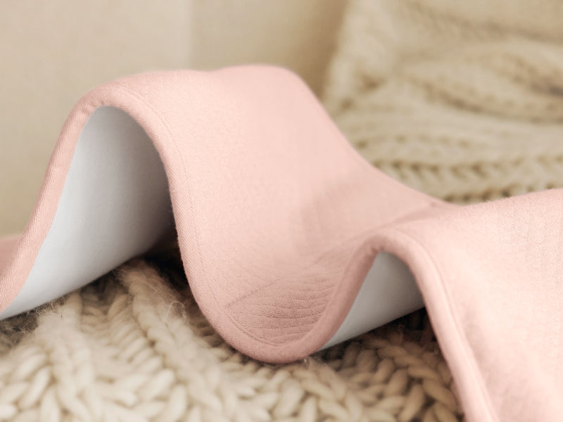 • Ergonomic burp cloth with a figure-8 design that stays snug for broad coverage