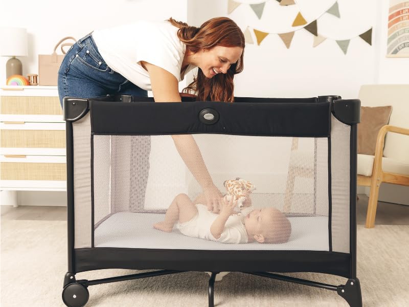 - Stretchable SnugFit playard sheets for easy fit and removal