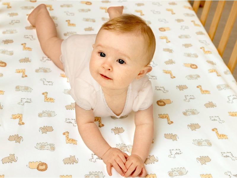- Mini fitted crib sheet with a waterproof layer for leaks and spills