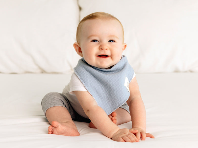 Get a serious style and functionality boost with the all-new Quin fabric, a refined twist to our beloved organic cotton. The distinctively woven pattern adds an understated touch of style to any everyday outfit while enhancing plushness and absorbency. Quin absorbs drool in a flash, keeping those sensitive cheeks dry and comfortable, making it the perfect blend of elegance and reliability for your little one.