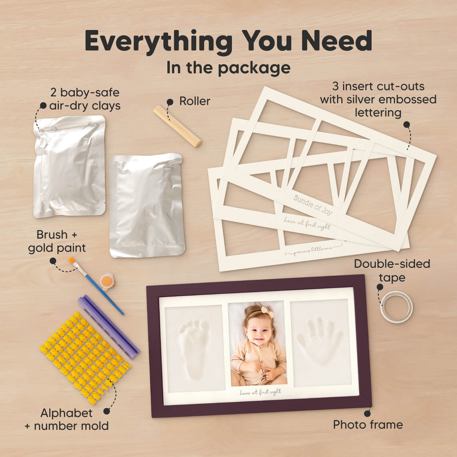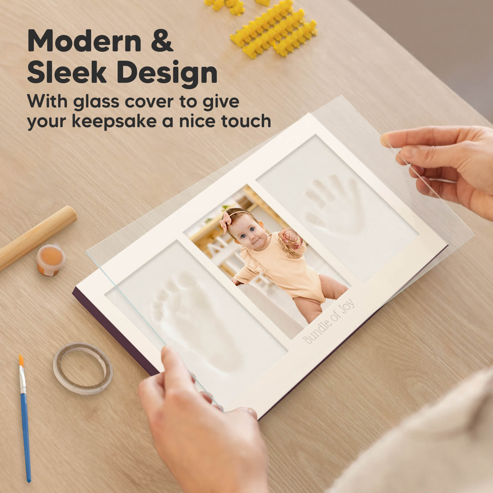 Personalizing your Handprint and Footprint Keepsake Frame Kit is a cute and fun way to keep their childhood memories alive. This Baby Handprint Kit comes with Acrylic Paint, Paint Brush and Name/Date Printing Kit. Made with premium wood and...(See More)