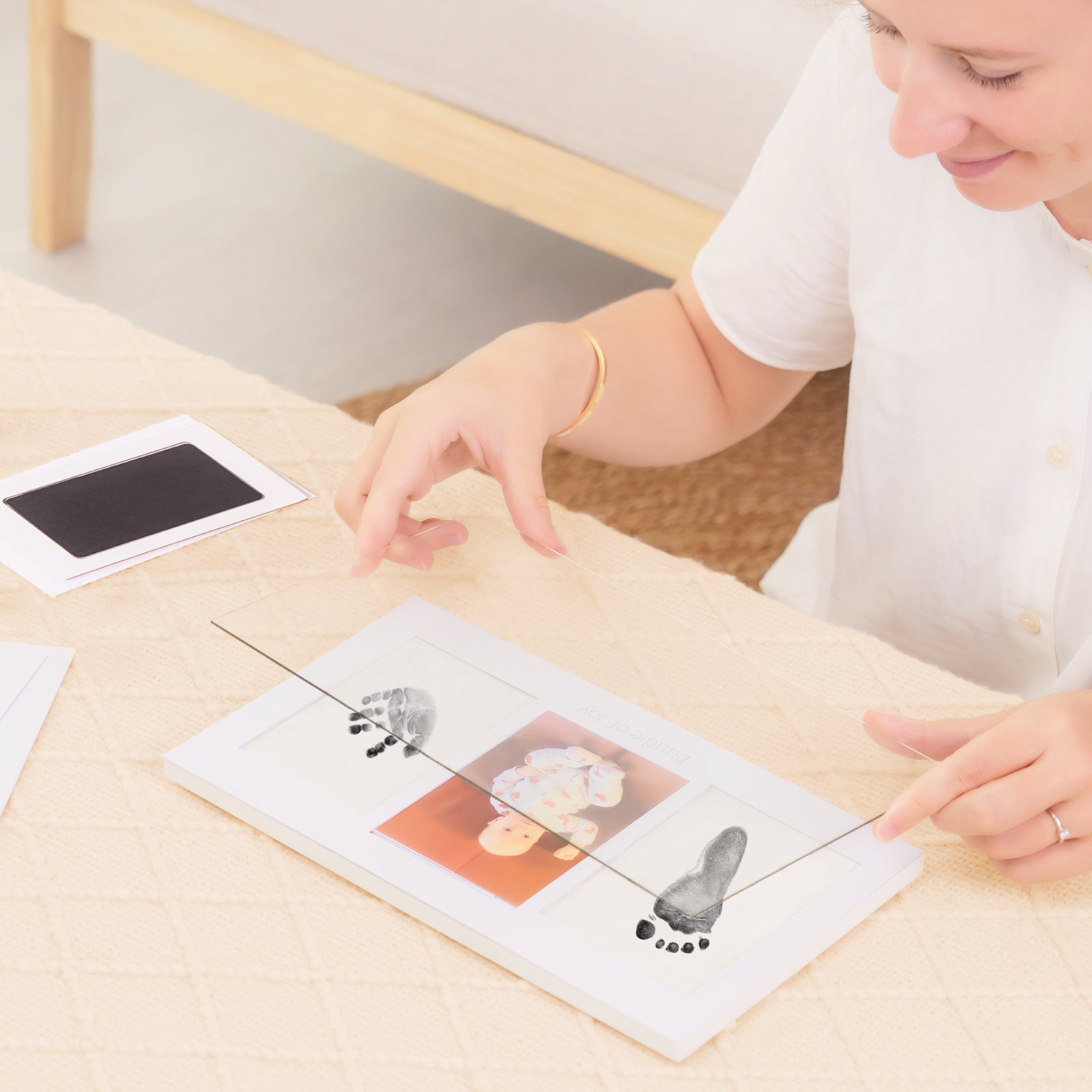 Our Clean Touch Inkless Hand & Footprint Duo Frame Kit is mess-free and easy to use, leaves no residues on your baby's hands or feet.