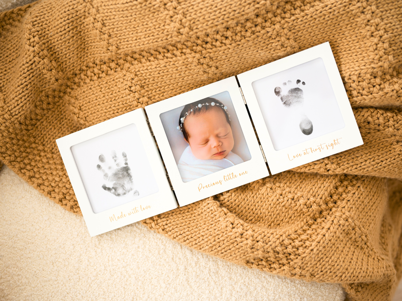 With a tri-fold design, the Fond Inkless Baby Hand and Footprint Kit offers a multi-dimensional display of baby's prints and photo. Its enhanced visual impact creates a captivating centerpiece that beautifully complements any nursery or home decor, making it a truly remarkable addition to the family's keepsake collection.