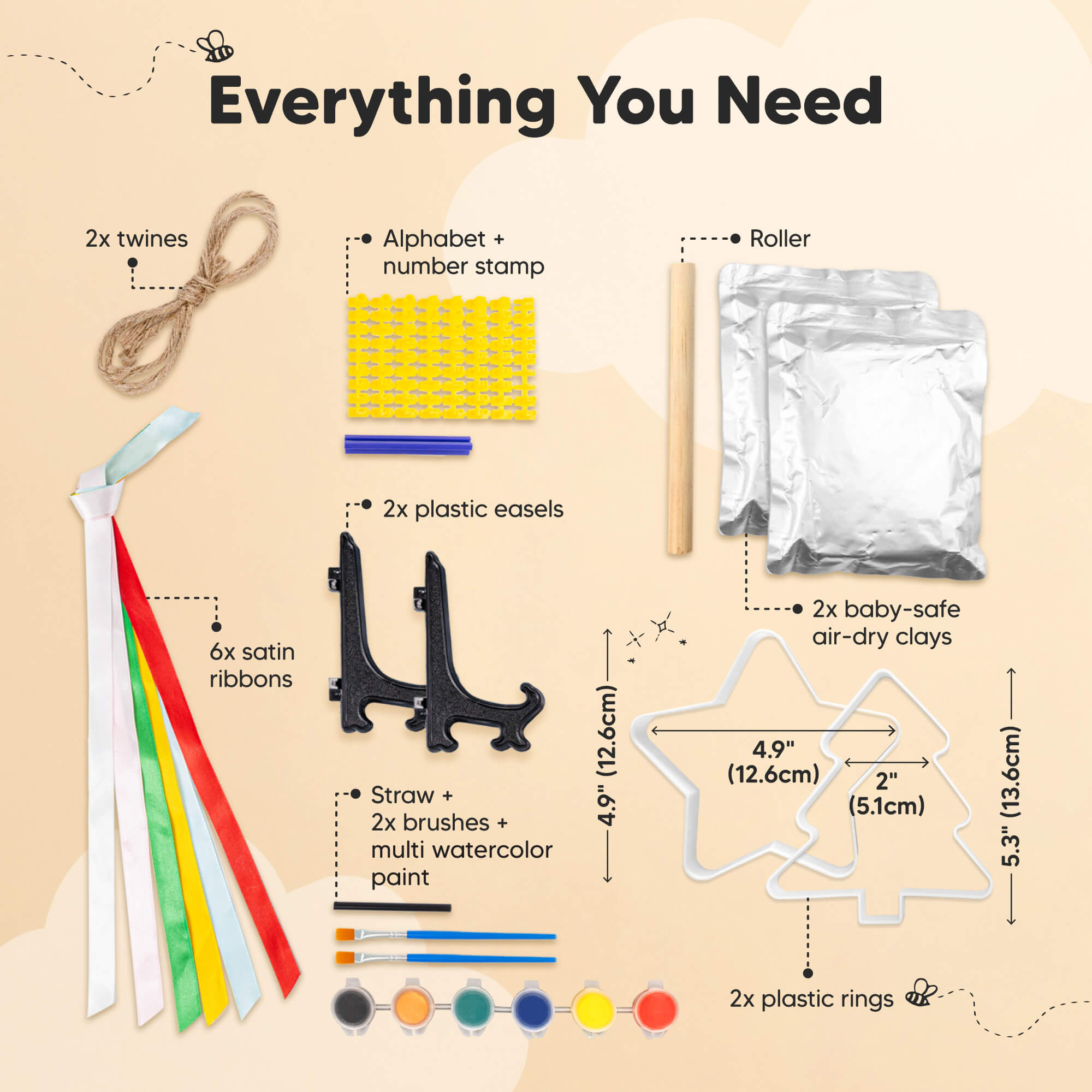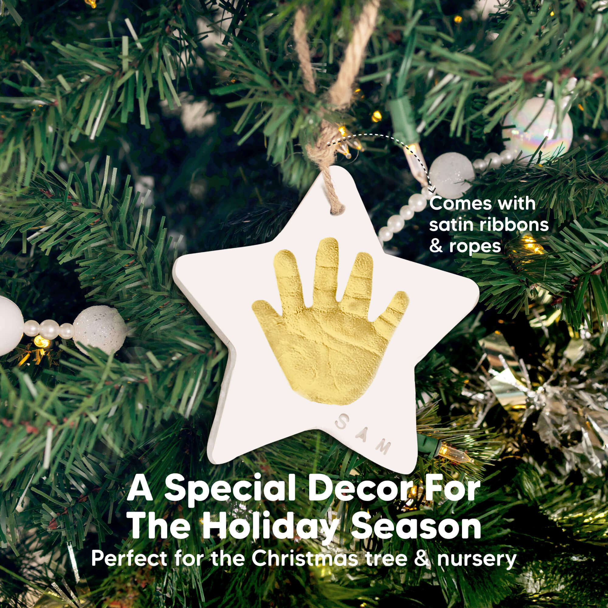 All-in-1 Baby Ornament Kit - Our Baby Hand and Footprint Ornament Kit Set comes with everything you need to complete your DIY baby's first ornament. You get: 2 packs of air-dry clay, 2 o-rings, 2 working mats and 1...(See More)