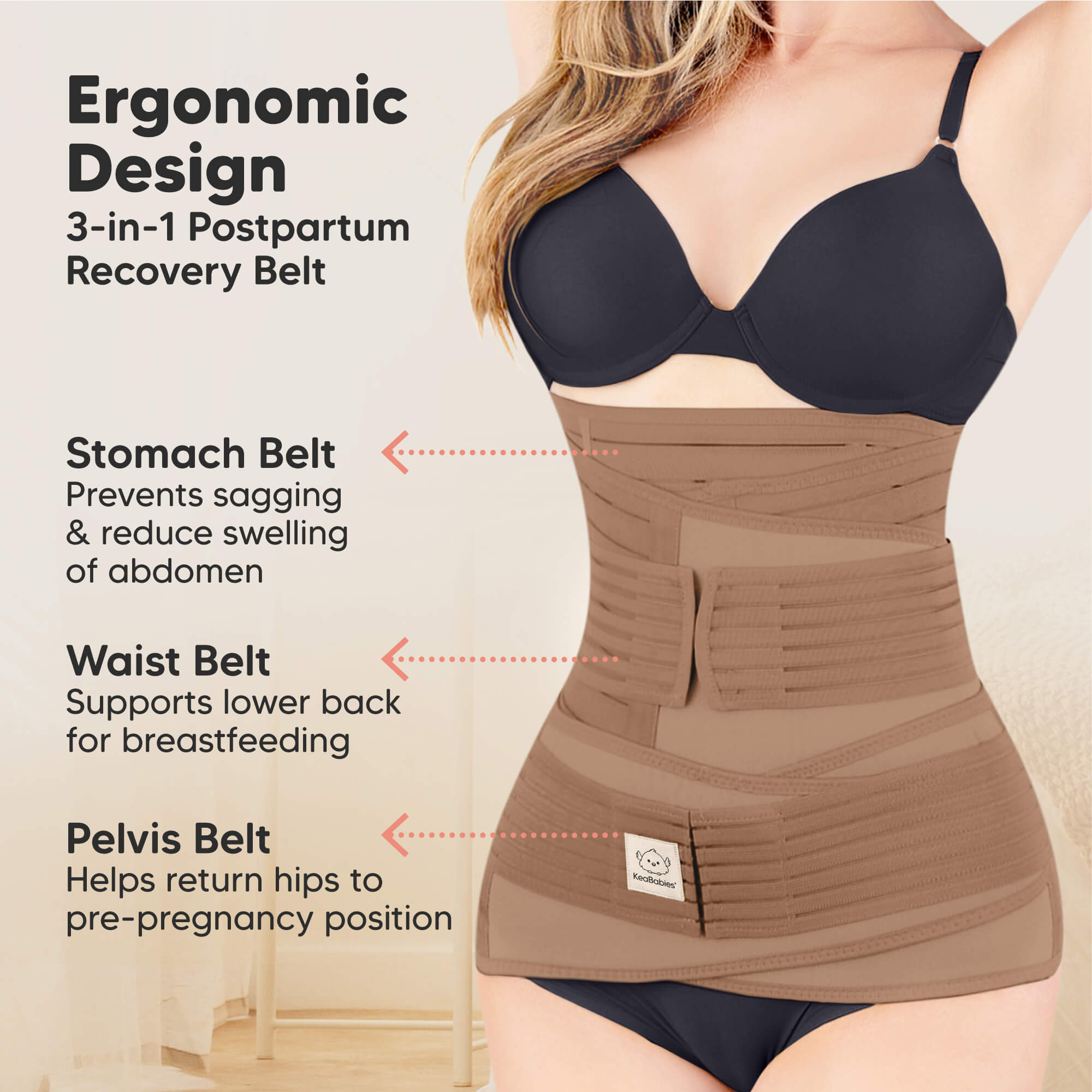 Now is the perfect time to wear all three: the Stomach Belt, the Waist Belt, and the Pelvis Belt. This combination will help tighten your pelvic joints, strengthen your core and help your body return to the pre-pregnancy state.