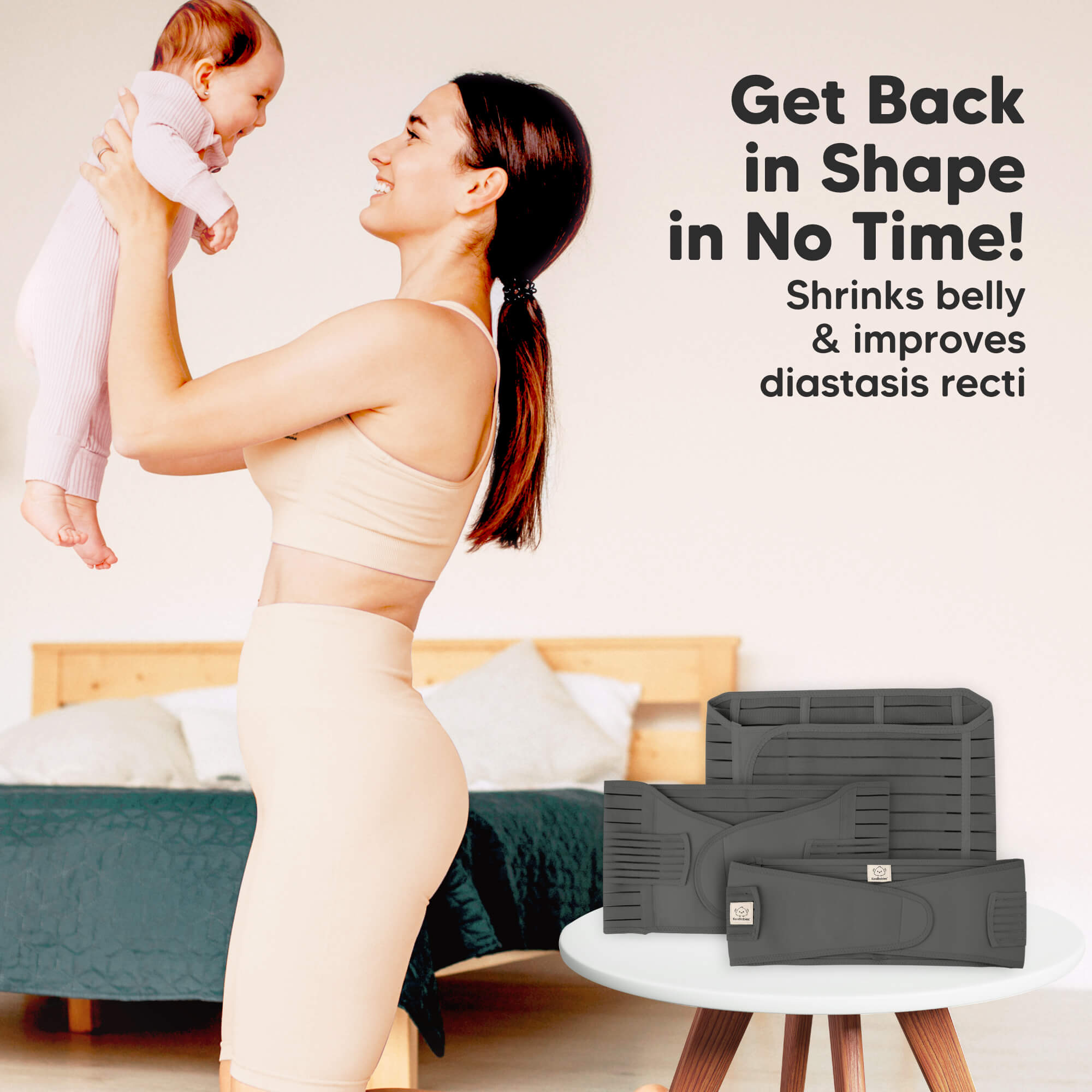Now is the perfect time to wear all three: the Stomach Belt, the Waist Belt, and the Pelvis Belt. This combination will help tighten your pelvic joints, strengthen your core and help your body return to the pre-pregnancy state.