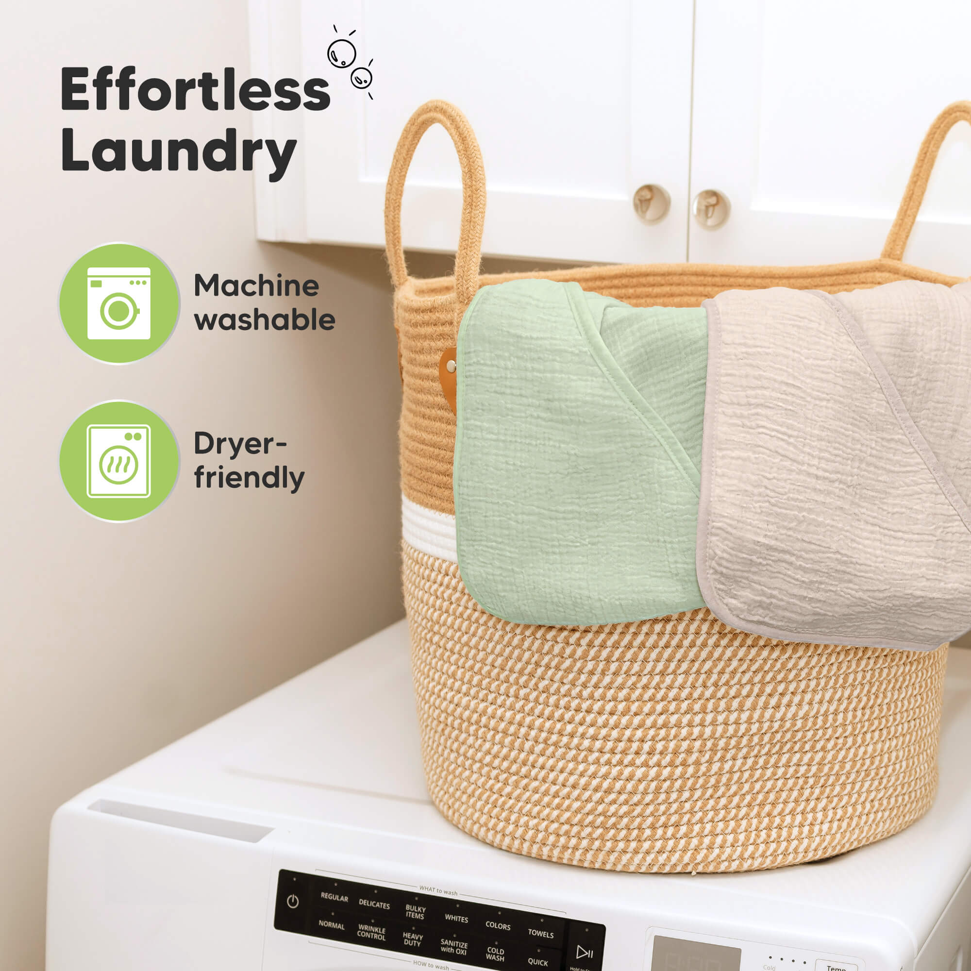Machine washable and dryer-friendly, the Lyra Muslin Hooded Towel is designed to withstand countless washes. Growing softer with each cycle, it retains its plush feel and gentle touch, providing lasting comfort for your little one, wash after wash.