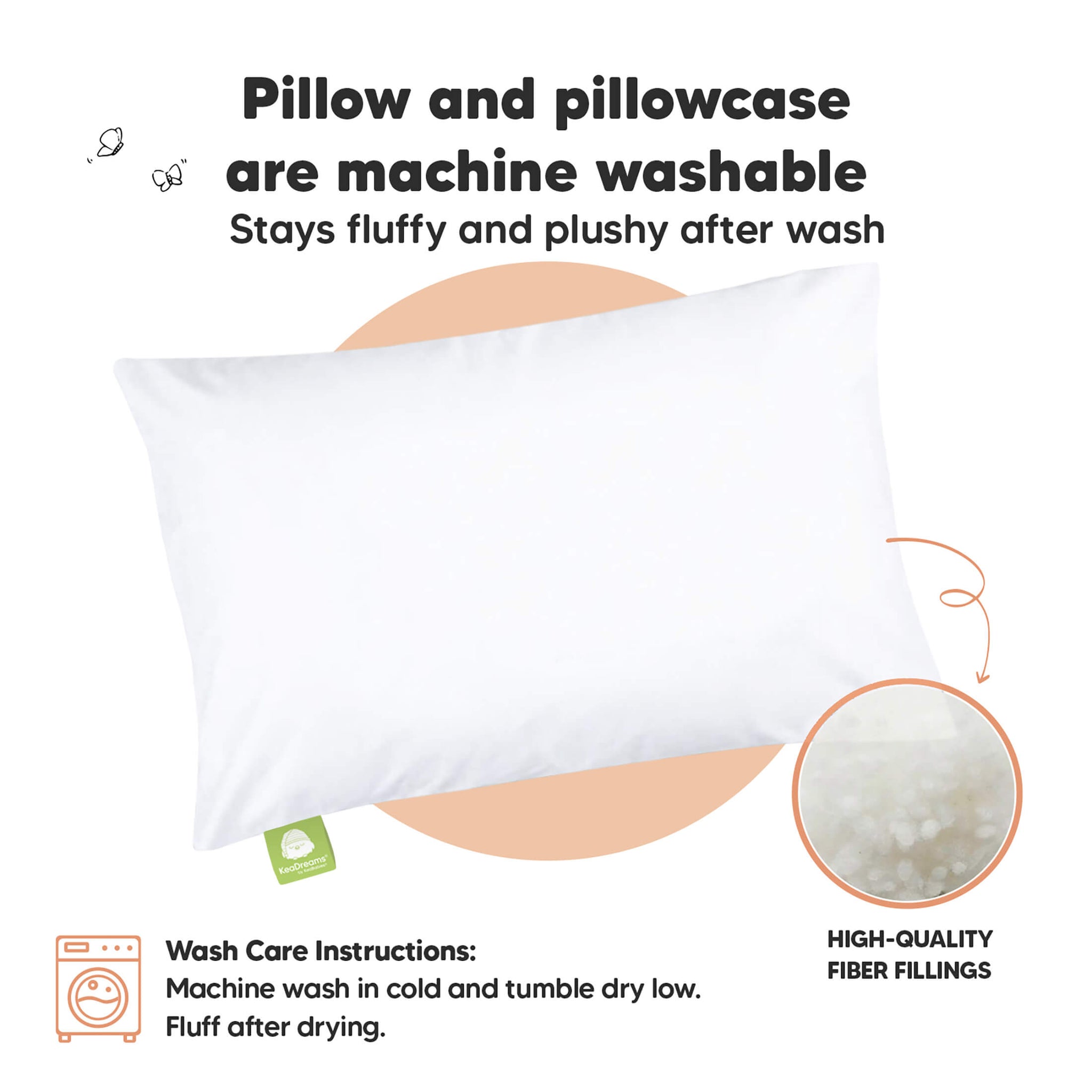Bought these pillows for 3-year-old twins. They're soft, cute, and the pillow cases are easy to clean (haven't tried to clean the pillow itself yet)