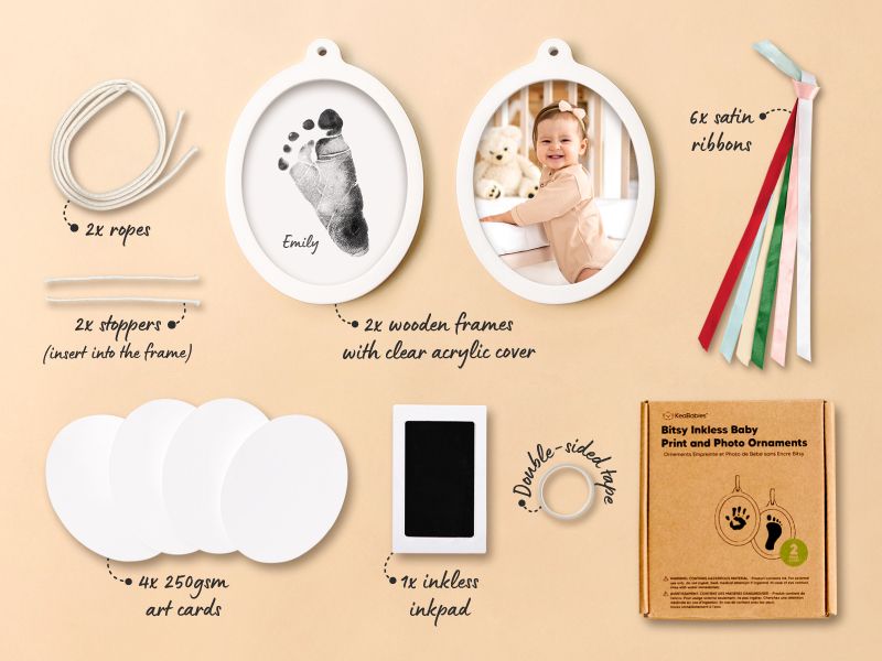 Capture precious moments with the Bitsy Inkless Baby Photo Ornaments. Effortlessly create beautiful, lasting prints without the mess. The perfect baby keepsake for cherishing your little one’s early days and also your pets' nose and dogs paw prints!