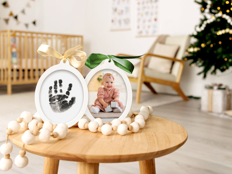 The Bitsy Inkless Baby Ornaments make the perfect decor for the holiday season, from adorning your Christmas tree to adding a sweet touch to the nursery or living space. With customizable satin ribbons and natural ropes, these keepsakes fit effortlessly into any festive or home decor, creating a lasting memory that's both beautiful and personal.
