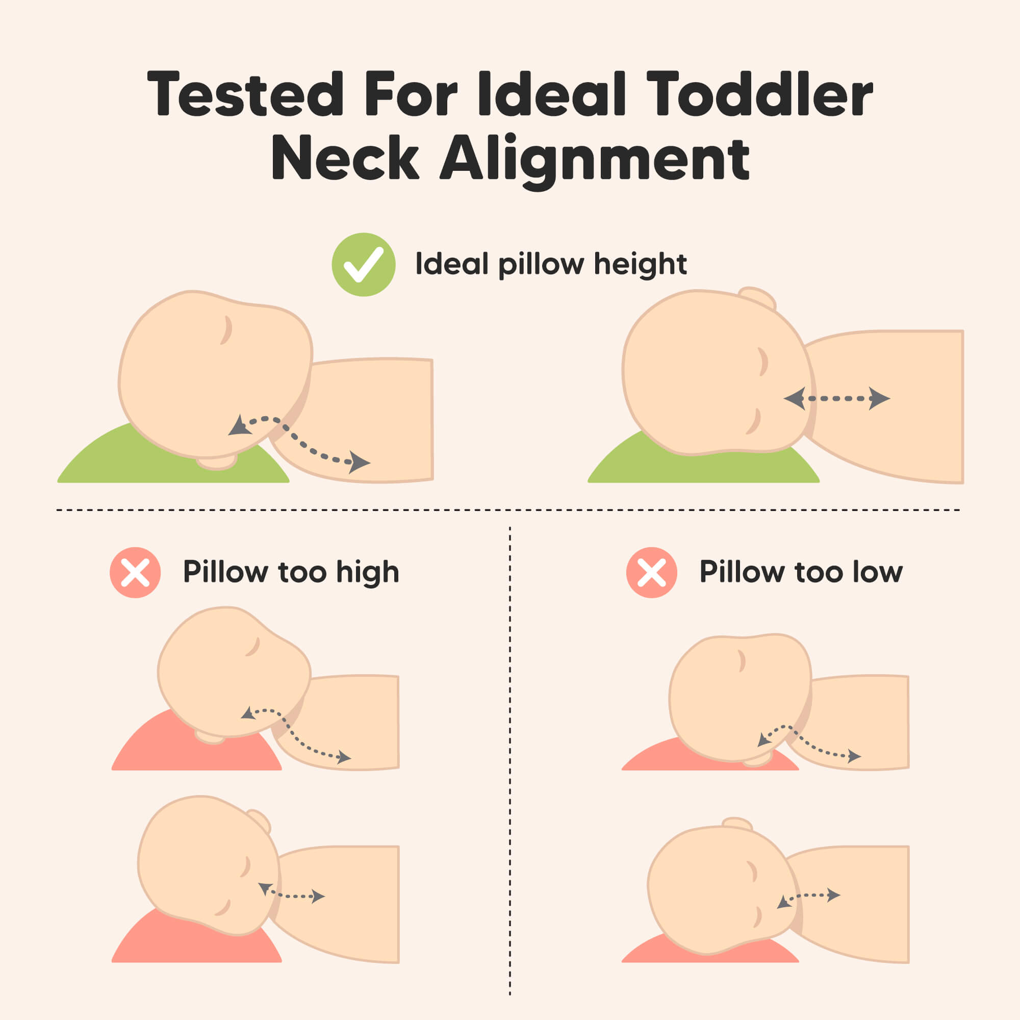 Specially tested by children of different ages, to ensure that the pillow softness and height is just right for any types of sleepers. Our Toddler Pillow is made with 220TC and 100% Cotton, which makes it perfectly suitable for...(See More)